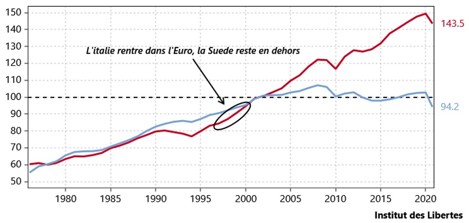 Chart from Charles Gave's article "Souverainiste et contre l’euro, partisan du libre échange et contre l’état stratège, Libéral je suis."
